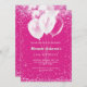 Un arrière - plan rose vif. Décoré de confettis roses et de ballons blancs. Texte blanc. Personnalisez et ajoutez un nom et des détails du parti.