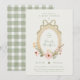 Célébrez une nouvelle arrivée adorable avec cette élégante invitation de baby shower à l'aquarelle florale. Caractérisé par un ruban vert sauge doux, des fleurs pastel délicates et un cadre ovale d'inspiration vintage, ce design est parfait pour une célébration de baby shower raffinée et féminine.
