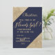 Invitation Fille Fleur en Or Bleu Marine Faux Pailleté Sequin