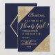 Élégant, chic et glamour, faux coins pailletés dorés et lettrage doré sur fond bleu marine, "Veux-tu être ma demoiselle d'honneur ?" Cartes d'invitation pour demoiselle d'honneur. Ce design classique et sophistiqué est parfait pour la mariée branchée et élégante qui souhaite faire sentir sa demoiselle d'honneur spéciale et aimée. Personnalisez avec votre propre message sur le devant ainsi qu'un monogramme personnalisé au dos. Conception entièrement réalisée à partir de vos photos.