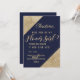 Élégants, chics et glamour, coins en paillettes dorées et écriture dorée sur fond bleu marine, "Veux-tu être ma demoiselle d'honneur ?" Cartes d'invitation pour demoiselle d'honneur. Ce design classique et sophistiqué est parfait pour la mariée branchée et élégante qui souhaite faire sentir sa demoiselle d'honneur spéciale et aimée. Personnalisez avec votre propre message sur le devant ainsi qu'un monogramme personnalisé au dos. Conception entièrement réalisée à partir de vos photos.
