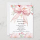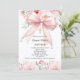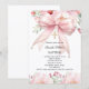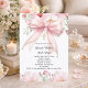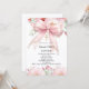 Un fond blanc, décoré avec un grand noeud rose avec perles et, une croix dorée et fleurs roses. Personnalisez et ajoutez un nom et des détails détails.