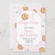 Un Cookie Dur ! Invitation de fête d'anniversaire de Milk and Cookies en rose avec des biscuits à puce chocolat et des bouteilles de lait et des pailles roses. Premier Invitation d'anniversaire.