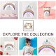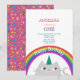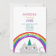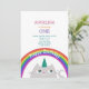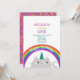 Invitation simple et moderne pour le 1er anniversaire de bébé fille avec licorne, chat mignon, arc-en-ciel et étoiles !