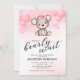 Nous pouvons à peine attendre les invitations de fête prénatale présentant un fond lavé d'aquarelle rose, un adorable bébé ours, des ballons en forme de cœur élégants et un modèle de fête prénatale personnalisable ourson en peluche facile à personnaliser.
