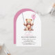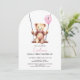 Célébrez le premier anniversaire de votre enfant avec ces adorables invitations de fête ourson! Le design présente un ourson aquarelle adorable se balançant doucement sur une balançoire en bois, tout en tenant un ballon rose avec le numéro un écrit dessus. Utilisez les outils de conception pour personnaliser le texte et les polices. Également disponible en téléchargement numérique pour invitation.
