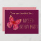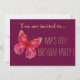 Une invitation d'anniversaire mignonne et entièrement personnalisable qui convient à un jeune enfant, une jeune fille ou une fille d'entre-deux. Ce joli design est pour une fête de fille et a une image d'un papillon rose contre un arrière - plan violet foncé - la couleur arrière - plan est personnalisable.