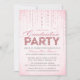Célébrez le diplômé en style avec ces invitations chic à la remise des diplômes de parties scintillant rose! Ce magnifique design présente un arrière - plan rose légèrement texturé avec une typographie stylée, une bordure de gemmes en streaming du haut et le mot "Party" ensemble avec un effet de parties scintillant numérique. VEUILLEZ NOTER : CETTE CONCEPTION NE COMPORTE QU'UNE IMAGE IMPRIMÉE DE PARTIES SCINTILLANT ; IL N'Y A PAS DE PARTIES SCINTILLANT PHYSIQUE UTILISÉE OU INCLUSE ; IL N'Y A PAS D'EMBELLISSEMENTS.