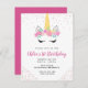 Invitation Fille rose mignonne Unicorn fête d'anniversaire