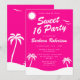 Invitation Fille rose Tropical Plage Anniversaire Sweet 16