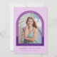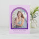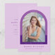 Cette faire-part moderne de remise de diplômes et l'invitation à la fête de remise de diplômes comprend une photo de votre diplômé, placée dans une arche branchée. Une volée voûtée borde la photo de votre grand, sertie dans différents tons de violet. Tous les textes et les couleurs de cette conception sont modifiables. L'arrière de cette conception comporte une invitation à la remise des diplômes, qui peut être modifiée à votre goût ou retirée ensemble. Vous pouvez trouver différentes éditions de ce design dans mon magasin Zazzle.