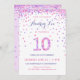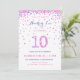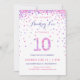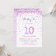 Célébrez l'anniversaire de votre 10 ans avec des confettis colorés rose et violet sur ces invitations d'anniversaire de 10 ans ! Avec les détails de la fête de votre fille et un "10" en confetti. Le dos a un design confetti avec une couleur lavande douce. Ce design adorable est super mignon et girly - et parfait pour la fille qui aime le rose et le violet!