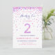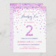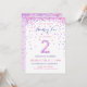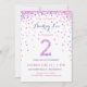 Célébrez l'anniversaire de votre enfant de 2 ans avec des confettis colorés rose et violet sur ces invitations d'anniversaire de 2 ans ! Avec les détails de la fête de votre fille et un "2" en confetti. Le dos a un design confetti avec une couleur lavande douce. Ce design adorable est super mignon et girly - et parfait pour la fille qui aime le rose et le violet!