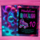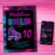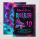Invitation Filles de fête à roulettes néon Glow Birthday