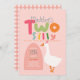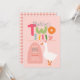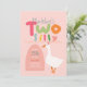 Ce design d'invitation pour les filles mignonnes et capricieuses de 2ème anniversaire comporte une oie stupide avec un casquette de fête rose, et peut être personnalisé avec toutes les informations dont vous avez besoin pour la deuxième partie de votre enfant dans la typographie mignonne et colorée. L'invitation dispose également d'un motif rose en vichy assorti au dos. Les invitations parfaites à la ferme pour le premier anniversaire de votre petit!