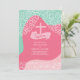 Des tourbillons branchés d'accents feuillus recouvrent des vagues de rose clair, rose chaud et vert de mer sur cette invitation baptismale moderne.