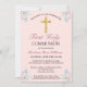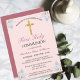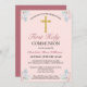 Réunissez amis et famille pour assister à la 1ère communion de votre fille avec cette première invitation à la communion de la fille rose douce. Un arrière - plan rose pâle donne un ton élégant à chaque recoin, avec des bouquets de fleurs douces, bleus et roses. Une croix d'or honore le centre de cette invitation de la Sainte Communion pour les filles. Personnalisez avec le nom de votre enfant et toutes les informations nécessaires à votre célébration.