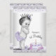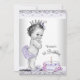 Adorable lavande violette et gris invitation de fête de premier anniversaire avec adorable princesse vintage portant pantalon lavande et couronne sur un joli lavande et dentelle grise et arrière - plan de gâteau d'anniversaire. Cette invitation à la fête d'anniversaire en lavande et gris est facilement customisée pour votre événement en ajoutant les détails de votre événement, le style de police, la taille et la couleur de police et le libellé.