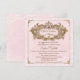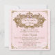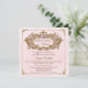 Invitation à une fête d'anniversaire Il était une fois avec une belle couronne dorée pailletée ornée avec un joli nœud rose sur un fond de dentelle doré et rose pâle. Vous pouvez facilement personnaliser cette invitation élégante de fête d'anniversaire première pour votre princesse de conte de fées rose et or en ajoutant simplement vos détails dans le style de police et la couleur, et la formulation que vous préférez. Toutes les conceptions sont des graphiques imprimés sans vrais bijoux, nœuds, paillettes, etc.