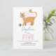 Une jolie invitation anniversaire de enfant pour les filles avec un chat de table gingembre ludique avec une boule rose sur le devant et un espace pour la personnalisation. Le dos présente un motif de chat tout-en-un pour plus de charme. Conçu comme un invitation de cinquième anniversaire mais facile à customiser pour n'importe quel âge. Idéal pour une soirée à thème kitty cat ou kitten.