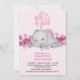 Invitation Filles mignonnes Bébé Eléphant Dormir Floral Rose
