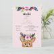 Invitation Filles mignonnes Cerf Rose Floral 1er Fleurs d'ann