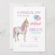 Les couleurs pastel douces et les détails rêveurs font de cette invitation la parfaite pour une célébration licorne magique.