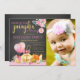 Petites filles invitations de fête d'anniversaire citrouille avec de jolis citrouilles rose et orange et or et des ballons sur un arrière - plan de tableau noir avec texte rose et or mignon et espace pour la photo. Vous pouvez facilement customiser cette adorable petite invitation d'anniversaire citrouille pour votre événement en ajoutant simplement vos détails. Il s'agit d'un dessin imprimé sans véritable feuille, arcs, etc.