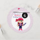 Une invitation amusante à la fête d'anniversaire pour la fille qui veut une fête sur le thème du pirate. Cette douce invitation aux pirates présente une illustration d'une fille pirate avec un bandana, une chemise rayée et un pantalon, vêtue d'un carré d'oeil avec un crâne et des arêtes croisées et tenant sur une épée. Son costume de pirate est rose et bleu vif. Entièrement personnalisable pour les détails des fêtes d'anniversaire, y compris un grand carré de yeux sur le devant pour l'âge de la Fille d'anniversaire! Le dos comprend également des illustrations de dessins d'un bateau de pirate et d'un crâne rose et bleu et de ses croisés. L'hôtel est présenté sur invitation ronde avec une bordure motif en zigzag rose et bleu chevron.