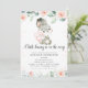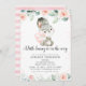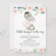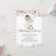 Girls Pink Floral Grey Bunny Baby shower Invitation Vous cherchez une invitation baby shower lapin sucré? Ce design présente des roses et du feuillage roses, un cap de calligraphie, un lapin gris et un ballon d'aquarelle. L'invitation au baby shower lapin de cette fille est idéale pour le baby shower à thème lapin d'une fille.