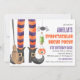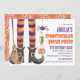 Filles Spooktacular Magic Halloween Invitation Anniversaire Cette fille sorcière jambes L'invitation d'anniversaire d'Halloween est une façon mignonne d'invitation les invités de votre petite fille à sa fête d'anniversaire d'Halloween thème. Il comporte une image de jambes et de bottes de sorcières, un balai de sorcières, une araignée et des bouteilles de potion. L'invitation colorée d'anniversaire d'Halloween de cette fille est idéale pour une fête de sorcières de fille.