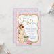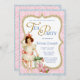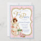 Vintage invitation à la fête du thé d'anniversaire avec mignonne fille victorienne sur un joli damas rose et arrière - plan bleu. Cette jolie invitation à la fête du thé rose, bleu et or est facilement customisée pour votre événement en ajoutant simplement vos détails dans le style de police et la couleur de votre choix. Il s'agit d'un dessin imprimé sans véritable parties scintillant.