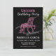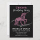 Ce design magique saura plaire à votre fille qui aime les licornes pour sa fête d'anniversaire. Cette invitation d'anniversaire pour filles est composée d'une jolie licorne rose avec des éclaboussures de poussière d'étoile avec du texte en rose et blanc.