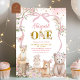 Invitation pour le premier anniversaire de fillette rose pâle printemps animaux de la forêt