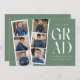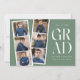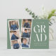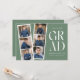 Invitations branchés de la fête de remise des diplômes avec une bande de film avec 6 photos carrés du diplômé. "Grad" est affiché en lettres modernes blanches avec un arrière - plan vert sauge foncé (la couleur arrière - plan peut être changée). Personnalisez le devant de l'invitation de la fête de graduation multiphoto en ajoutant le nom du diplômé, le nom de l'école et l'année de graduation. L'invitation inverse pour afficher les détails de votre fête de remise de diplômes en lettres blanches avec un arrière - plan sage. L'invitation moderne de la fête de remise de diplômes est parfait pour les diplômés du secondaire et du collège.