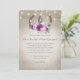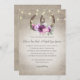 Joli fer à cheval violet et rose floral, aquarelle faire-part de mariage rustique avec des lampes à cordes pétillantes.