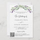 Un arrière - plan blanc décoré de fleurs de lavande et de verdure d'eucalyptus. Personnalisez et vos noms et détails, ajoutez votre URL de site mariage au code QR pour plus de détails et/ou RSVP.