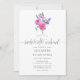 Roses et pivoines à thème rose chaud subtils invitations week-end bachelorette fleurie avec itinéraire aux accents de violet, turquoise, bleu et violet.