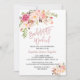 Design unique et élégant pour une soirée de bachelorette. Il présente des fleurs d'aquarelle rose, blush, l'écriture manuscrite en or faux rose moderne "BACHELORETTE WEEKEND" et "DETAILS". Utilisez l'outil Personnaliser pour ajouter des informations. D'autres idées dans ma collection de Bachelorette Party.