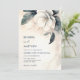 This elegant minimal wedding invitation features 3D faux relief white flower with a shadow on a tan background. First names only text template