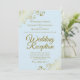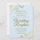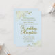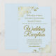Cette invitation simple est conçue pour les invités conviés à la réception mais pas à la cérémonie de mariage elle-même. Elle présente un design élégant et stylé avec des lettres calligraphiées dorées sur un fond bleu poudre pâle et des volutes et des boucles dorées fausses enjolivures dans les coins. Belle façon d'inviter vos amis et votre famille à célébrer avec vous !