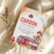 Fire Truck Firefighter Invitation de fête du 2e anniversaire