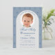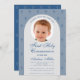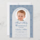 Invitation First Communion Boy Photo Dusty Blue Arch Moderne