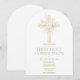 Invitation First Holy Communion Arched Invite, Floral Cross