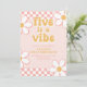 Invitation Five est une Vibe Retro Check Pink Daisy Invitatio