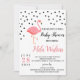 Ajoutez de la flamme flambée flambée à votre baby shower avec cette invitation personnalisée au baby shower de flamants et points noirs.