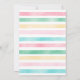 Une invitation festive à la douche nuptiale amusante présente un flamant rose sur la plage, en dégustant un cocktail tropical à côté d'un palmier avec une légende "fêtons" dans un script d'écriture moderne et décontractée. L'envers présente des rayures d'aquarelle rustique peintes à la main dans des couleurs rose estivale, vert, jaune et bleu turquoise. Art par KL Stock.
