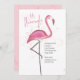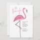 Ce design comporte une invitation d'anniversaire, avec une aquarelle, rose, tropical, design avec une typographie simple, et un oiseau flamand fantaisiste, avec une typographie flamboyante une grande invitation de plage ou de fête d'été