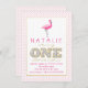 Flamant rose invitation de fête de premier anniversaire avec flamand rose et lettres diamant d'or épelant un sur un beau arrière - plan de pois rose et or. Vous pouvez facilement customiser ces invitations photo rose flamingo premier anniversaire pour votre événement en ajoutant simplement vos détails d'événement dans le style de police de votre choix. Il s'agit d'un dessin imprimé sans véritable papier, parties scintillant, diamants, etc.