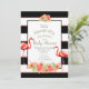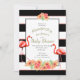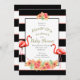 Flamant rose Tropical Floral Black Stripe Baby shower. Ce magnifique Flamant rose et design floral est un design amusant pour invitation vos amis à célébrer un baby shower. Vos informations sont facilement saisies sur l'invitation baby shower. Fleurs et Flamants roses roses sont à la base de ces Invitations de douche bébé modernes.
